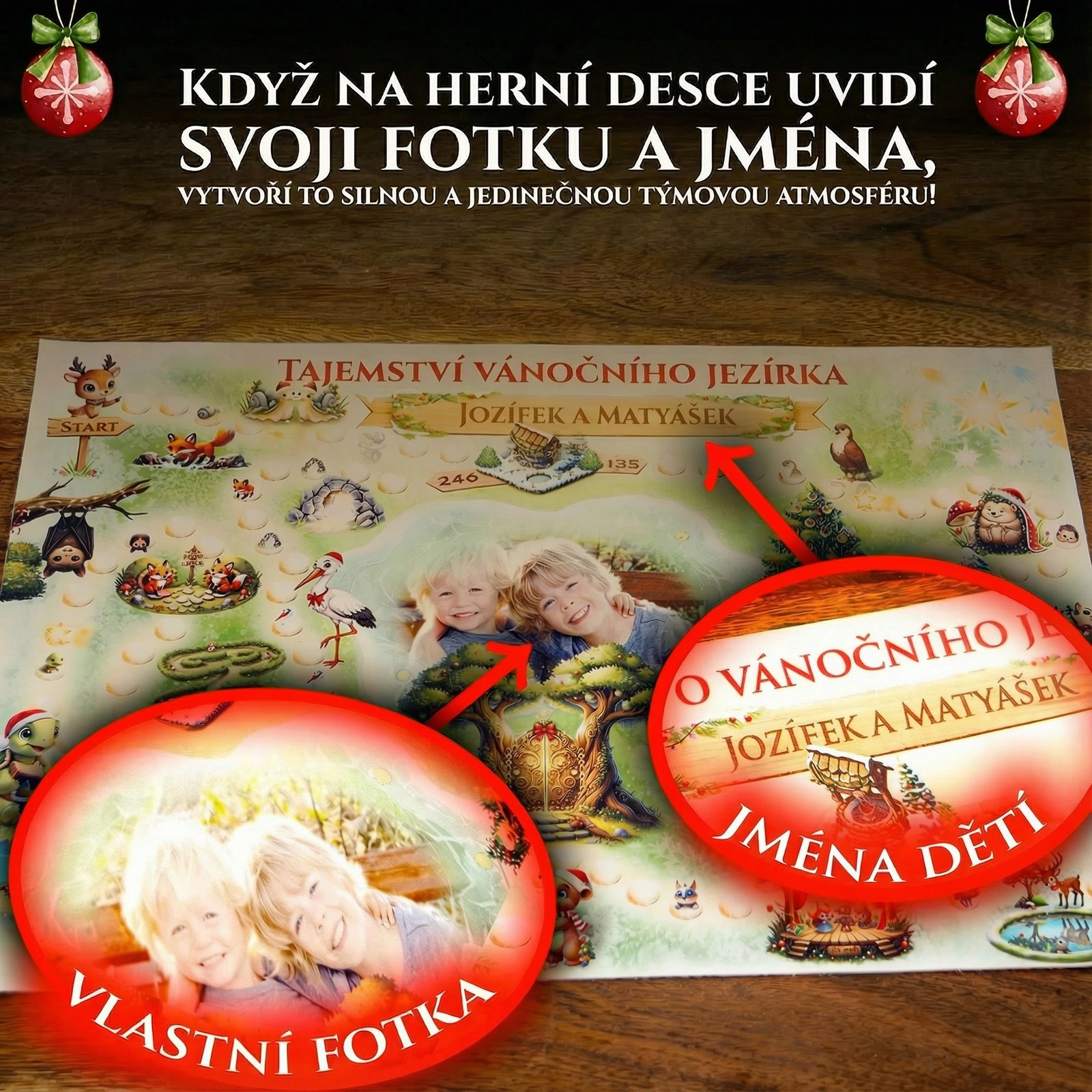 Tohle je ten hlavní „WOW“ moment. Herní plán personalizujeme jejich FOTKOU a JMÉNY. Najednou to není „nějaká hra“, ale JEJICH OSOBNÍ mise. - SPECIÁLNÍ LÁTKOVÝ PLÁN